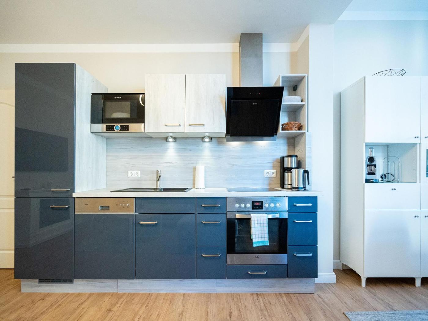 Two-Bedroom Apartment with Balcony. The fireplace is the standout feature of this apartment. This spacious apartment comes with 1 living room, 2 separate bedrooms and 1 bathroom with a shower and a hairdryer. The fully equipped kitchenette has a refrigerator, a dishwasher, an oven and a microwave. Boasting a balcony, this apartment also features a coffee machine, heating and a flat-screen TV. The unit has 3 beds.