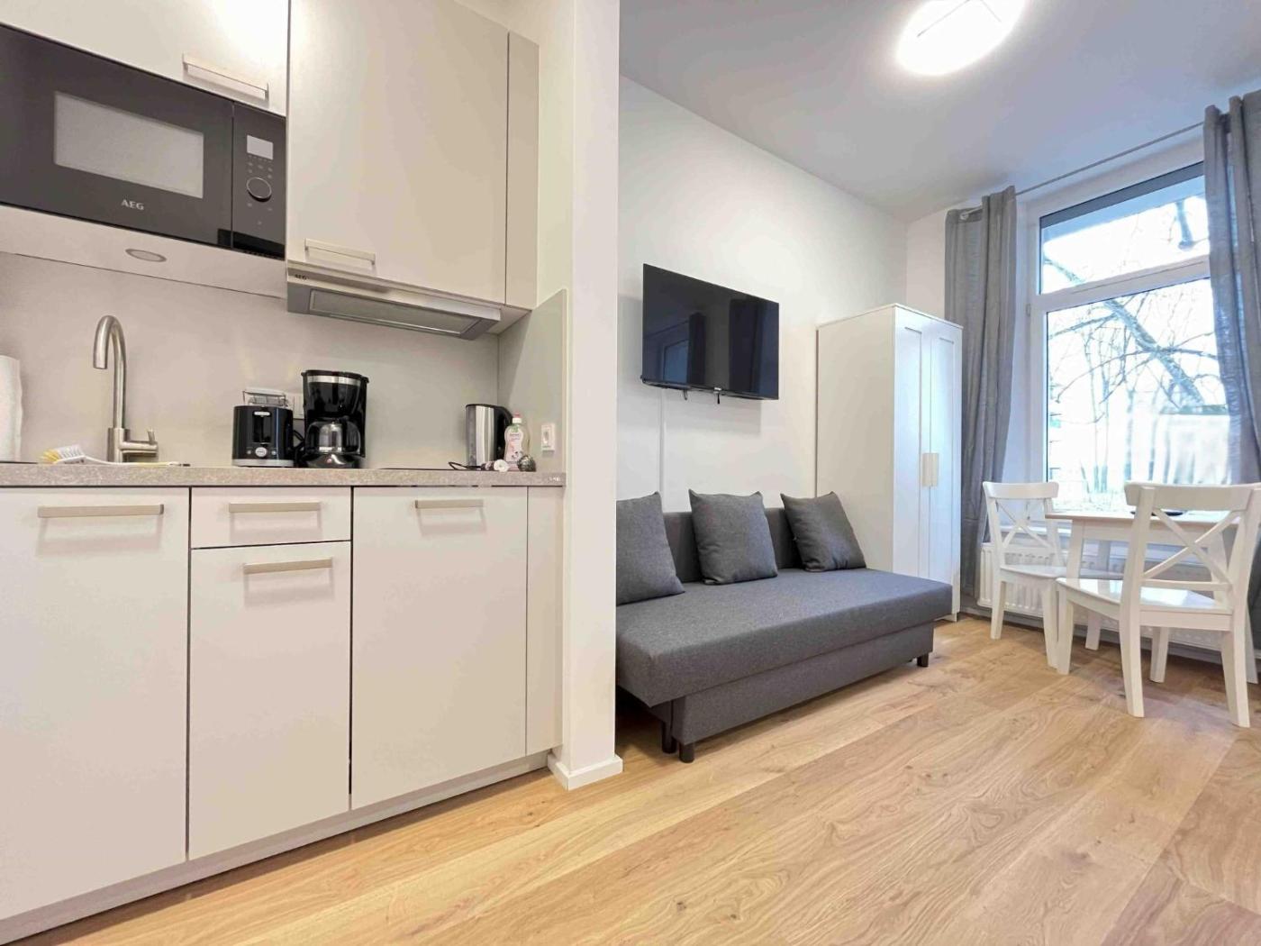 Apartment. This apartment is comprised of 1 living room, 1 separate bedroom and 1 bathroom with a bath or a shower. Guests can make meals in the kitchenette that is fitted with a refrigerator, a dishwasher and kitchenware. This apartment offers a TV. The unit offers 3 beds.