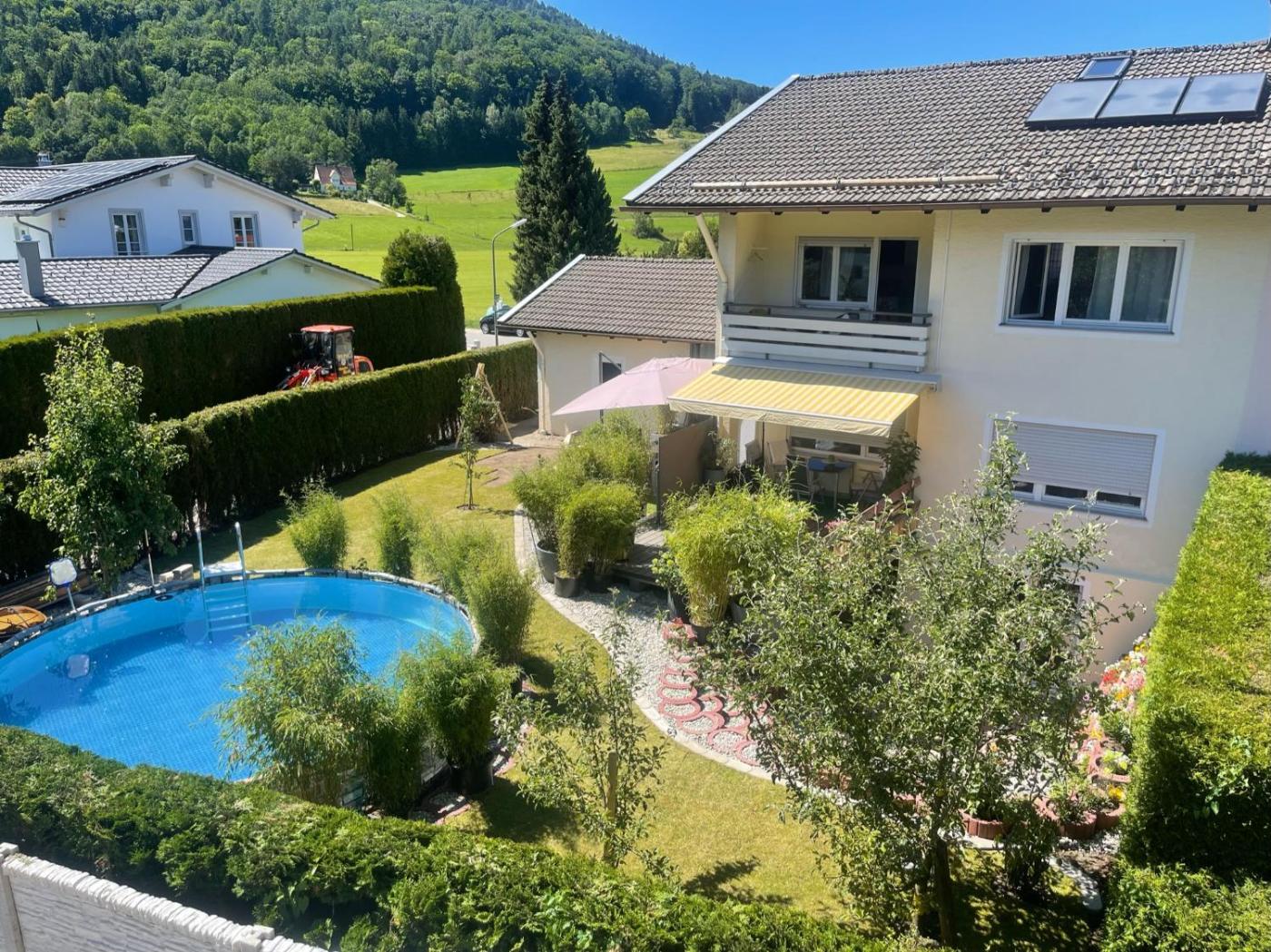 Guests can swim in the outdoor swimming pool, go skiing or relax in the garden.