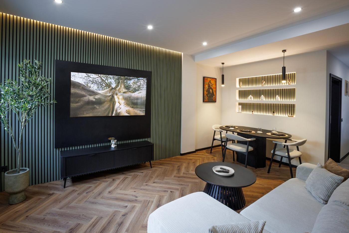 One-Bedroom Apartment. Boasting a private entrance, this apartment includes 1 living room, 1 separate bedroom and 1 bathroom with a walk-in shower and a hairdryer. In the fully equipped kitchen, guests will find a stovetop, a refrigerator, a dishwasher and kitchenware. The apartment offers a washing machine, soundproof walls, a minibar, a flat-screen TV with streaming services, as well as garden views. The unit has 2 beds.