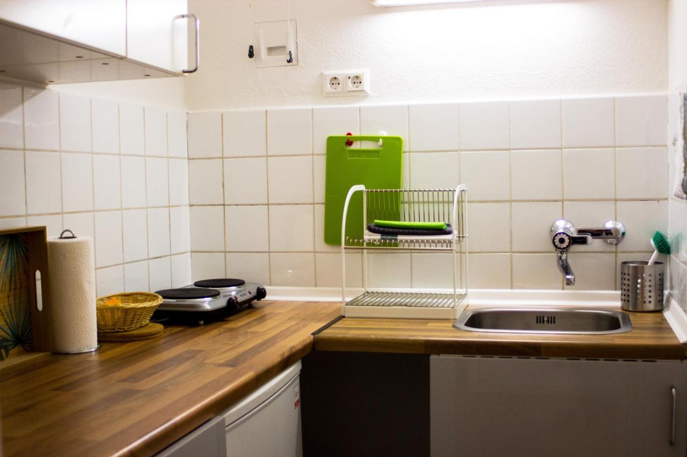 Apartment with Balcony. This apartment comprises 1 bedroom, a kitchenette and 1 bathroom with a shower and a hairdryer. In the kitchenette, guests will find a stovetop, a refrigerator, kitchenware and a microwave. Featuring a balcony with a quiet street view, this apartment also provides a washing machine and a flat-screen TV with satellite channels. The unit offers 1 bed. ;