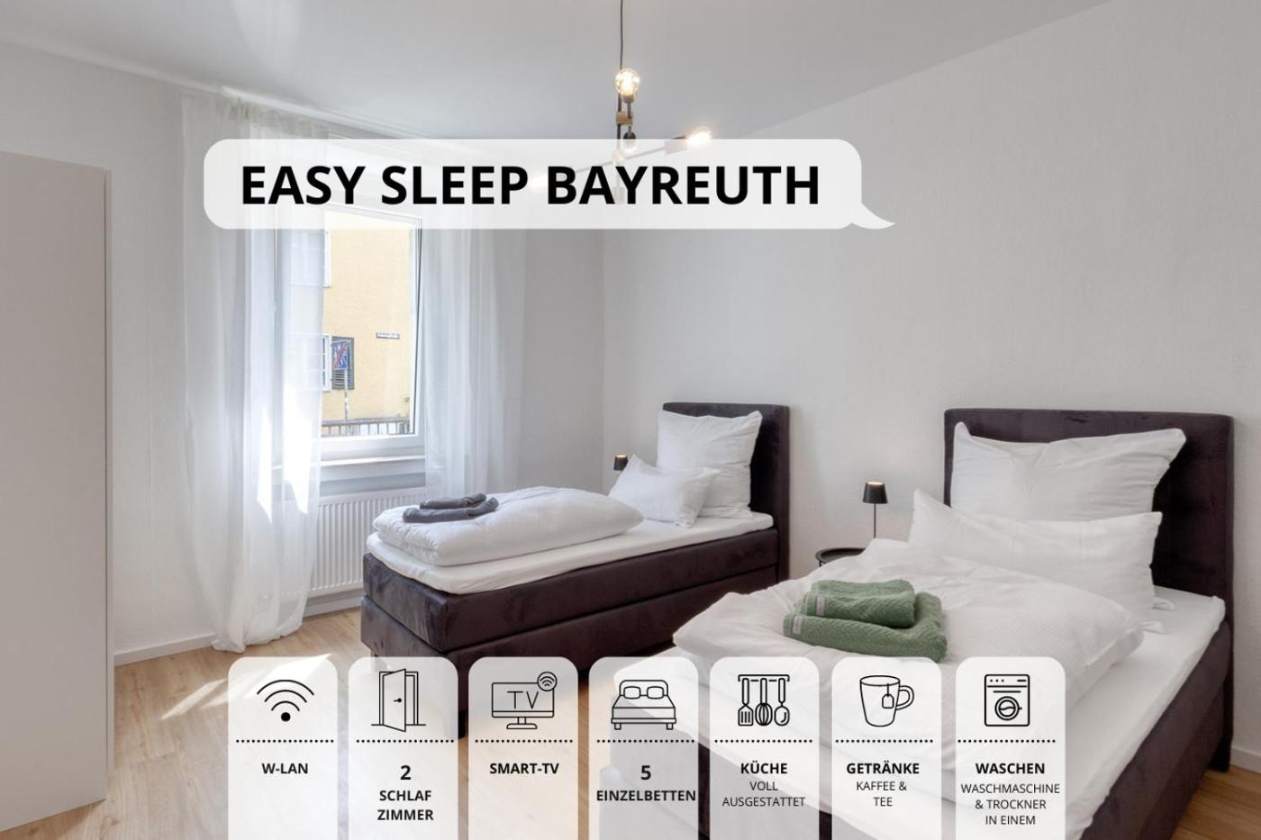 Situated 1.7 km from Bayreuth Central Station, 1.6 km from Oberfrankenhalle Bayreuth and 800 metres from Bayreuth New Palace, NEU Easy Sleep - FeWo mit 3 Zimmern bis 6 Personen, 5 Einzelbetten oder 2 Doppelbetten und 1 Schlafcouch, Küche, Tageslichtbad - Monteure willkommen features accommodation located in Bayreuth. During your time staying in this recently renovated apartment, dating back to 1925, you will have access to free WiFi.