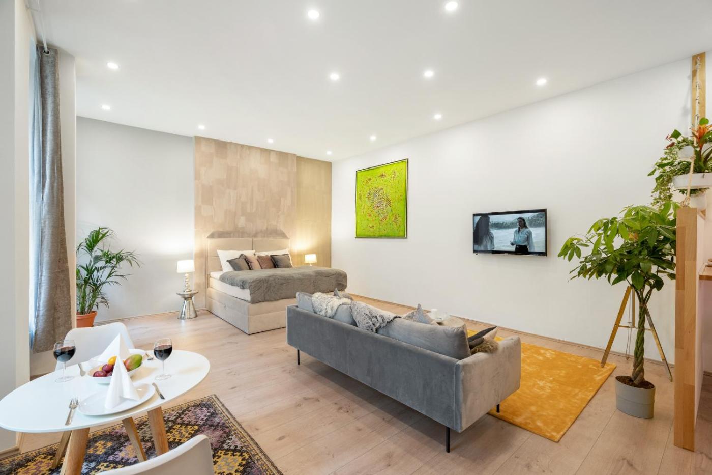 One-Bedroom Apartment. The fully equipped kitchen has a stovetop, a dishwasher, kitchenware and a microwave. The spacious apartment features a private entrance, a tea and coffee maker, a seating area, a flat-screen TV with streaming services, as well as garden views. The unit has 1 bed.