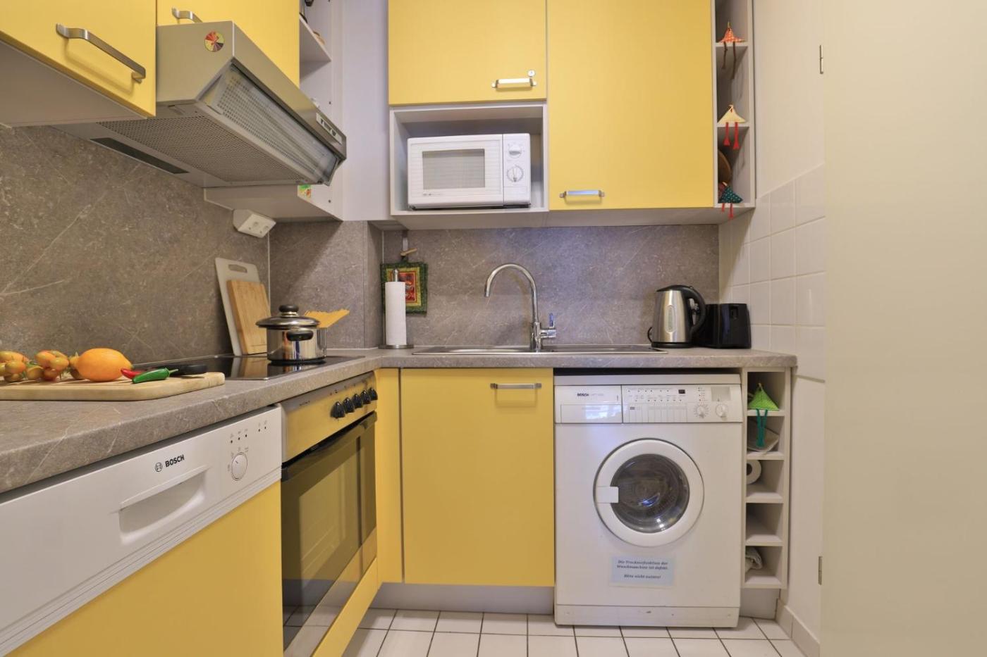 One-Bedroom Apartment with Balcony. This apartment consists of 1 bedroom, a kitchen and 1 bathroom with a shower and a hairdryer. In the fully equipped kitchen, guests will find a refrigerator, a dishwasher, an oven and a microwave. This apartment features a washing machine, a coffee machine, a flat-screen TV and a balcony.