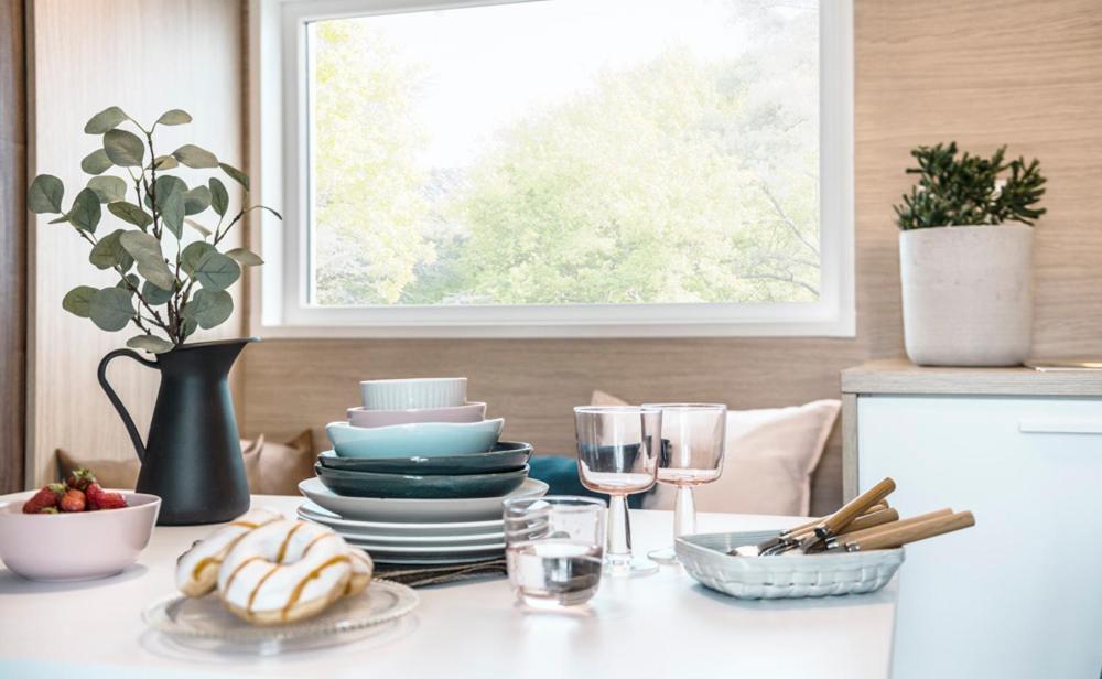Mobile Home. Boasting a private entrance, this mobile home comes with 1 living room, 2 separate bedrooms and 2 bathrooms with a shower. Featuring a terrace with garden views, this mobile home also features a coffee machine and a flat-screen TV. The unit has 3 beds. ;