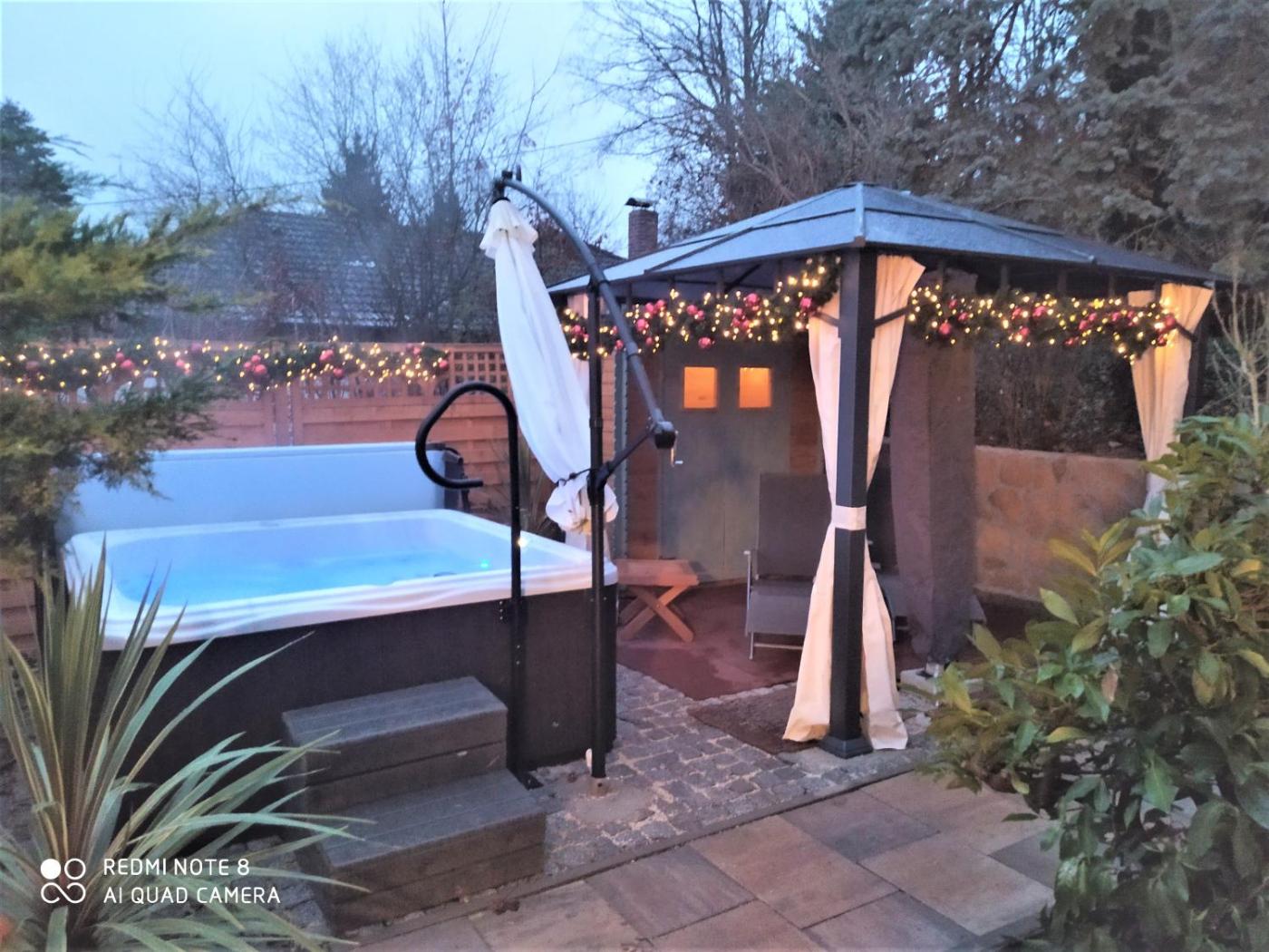 Set in Burgthann, Mediterran-Skandinavisch - Outdoorwhirlpool ganzjährig offers a patio with garden andcourtyard views, as well as a seasonal outdoor pool, hot tub and spa facilities. Both free WiFi and parking on-site are available at the apartment free of charge. On clear days, guests can head outside to enjoy the apartments outdoor fireplace or simply kick back and relax.