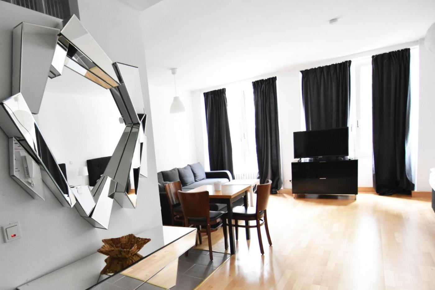 One-Bedroom Apartment. Featuring a private entrance, this apartment also consists of 1 separate bedroom, 1 bathroom with a shower, a kitchenette and a dining area. Meals can be prepared in the well-fitted kitchenette, which is equipped with a stovetop, a refrigerator, kitchenware and an oven. The apartment provides a washing machine, a coffee machine, heating and a flat-screen TV. The unit offers 2 beds.