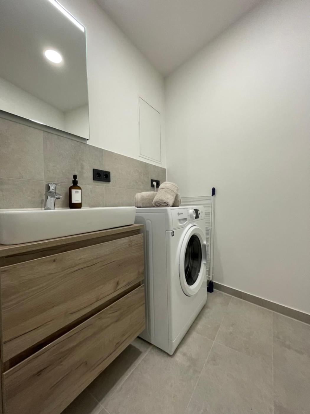 One-Bedroom Apartment. The fully equipped kitchenette has a stovetop, a refrigerator, a dishwasher and kitchenware. This apartment features a washing machine, a coffee machine, flat-screen TV, as well as winechampagne for guests. The unit has 1 bed.