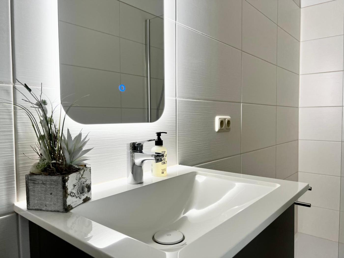 One-Bedroom Apartment. Featuring a private entrance, this apartment also is comprised of 1 bedroom, a seating area and 1 bathroom with a walk-in shower and slippers. In the well-equipped kitchen, guests will find a stovetop, a refrigerator, a dishwasher and kitchenware. The apartment offers a tea and coffee maker, a dining area, a wardrobe, a flat-screen TV, as well as garden views. The unit offers 1 bed.