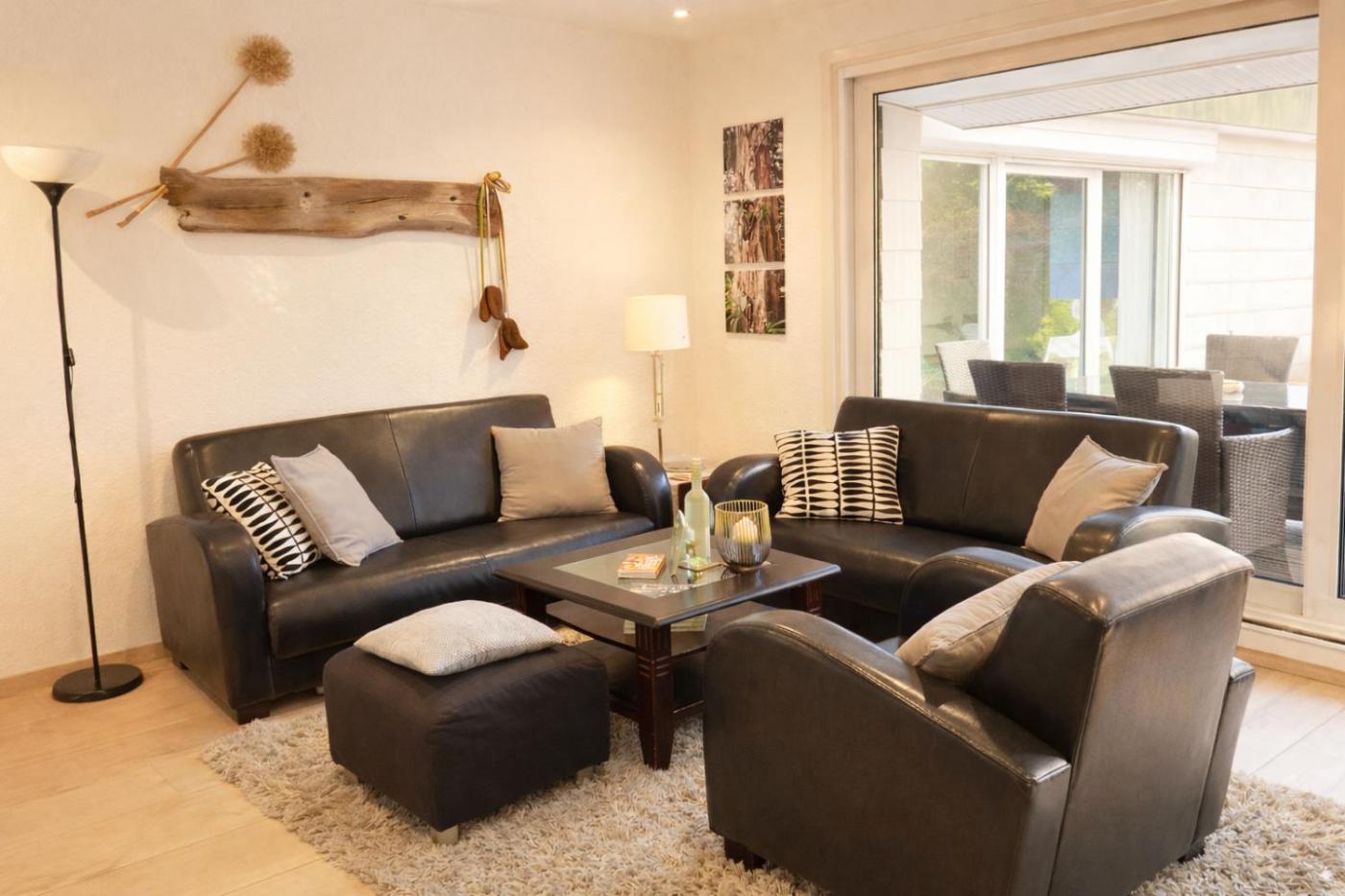 Three-Bedroom Apartment. This apartments standout features are the sauna and fireplace. Featuring a private entrance, this spacious apartment also is comprised of 3 bedrooms, a seating area and 2 bathrooms with a bath and a shower. Guests will find a stovetop, a refrigerator, a dishwasher and kitchenware in the fully equipped kitchen. The apartment also has a barbecue. Boasting a terrace with garden views, this apartment also offers a washing machine and a flat-screen TV. The unit offers 6 beds.