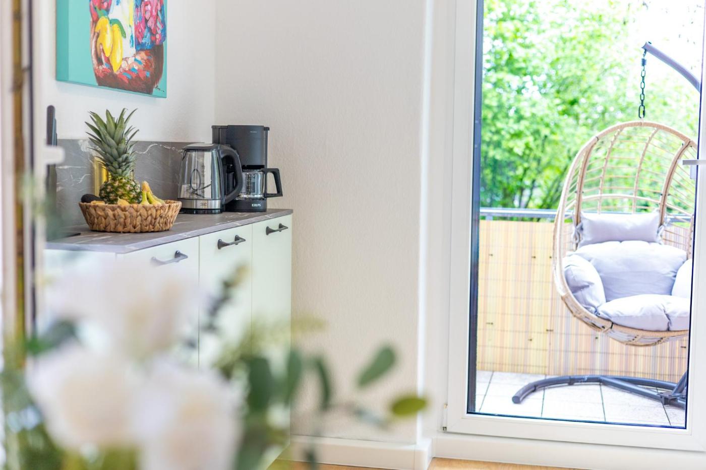 Two-Bedroom Apartment with Balcony. The air-conditioned apartment features 2 bedrooms, 1 bathroom with a shower and a kitchen. The well-fitted kitchen has a stovetop, a refrigerator, a dishwasher and kitchenware. Featuring a balcony with garden views, this apartment also offers a washing machine and a flat-screen TV. The unit offers 2 beds.