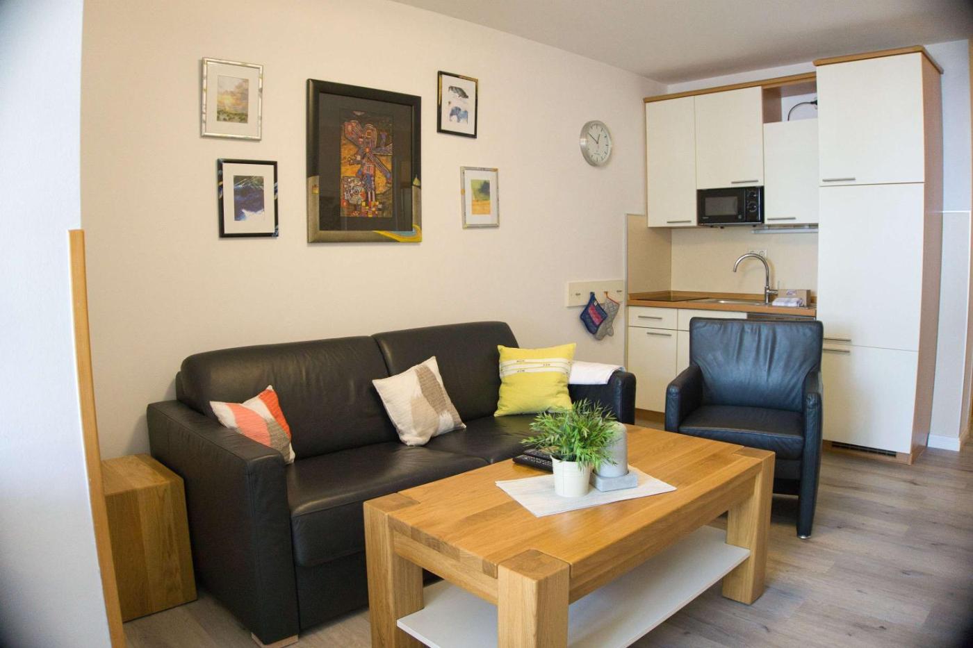 The apartment also features an outdoor swimming pool and a sauna for guests to relax in. Guests can enjoy the indoor pool at FeWo mit Meerblick, gratis Nutzung vom AHOI Erlebnisbad und Sauna in Sellin - Haus Blick zur See FeWo 02.