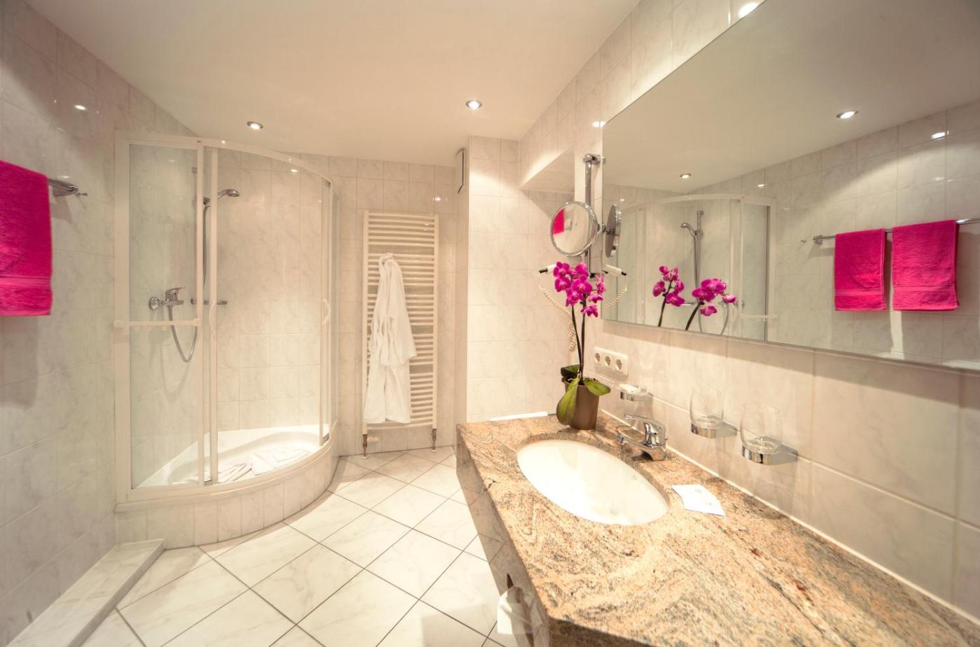 The Bavarian countryside is ideal for skiing, cycling, and hiking, with various trails starting directly at the property. The modern spa includes an indoor swimming pool, sauna and relaxation area.
