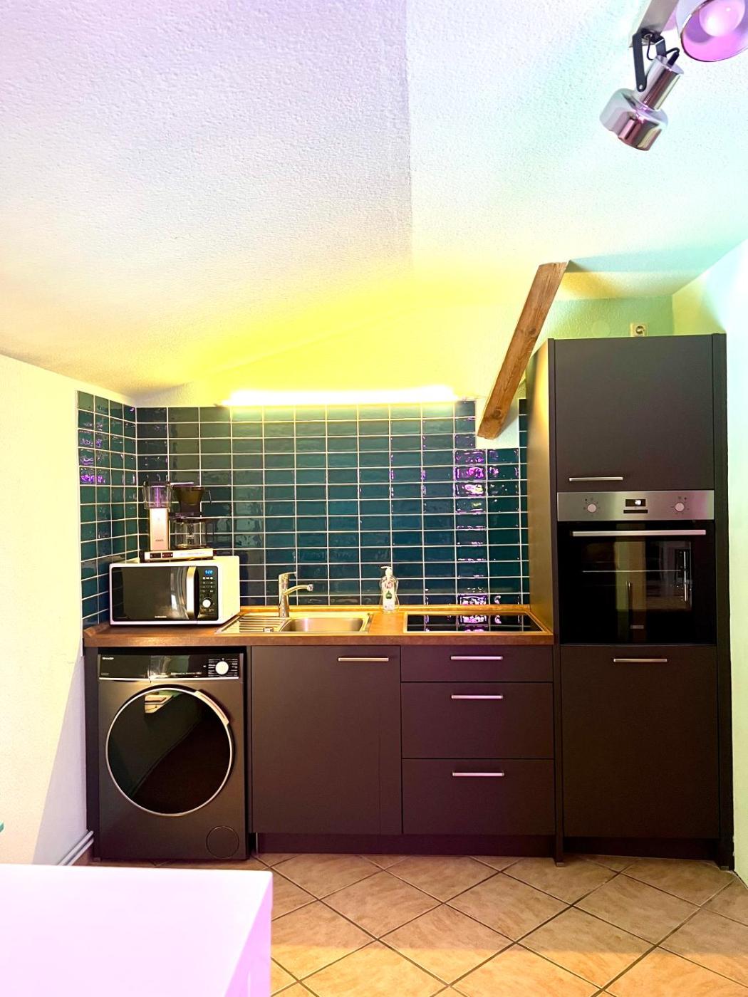 One-Bedroom Apartment. This spacious apartment comes with 1 living room, 1 separate bedroom and 1 bathroom with a shower and free toiletries. Guests will find a stovetop, a refrigerator, a dishwasher and kitchenware in the well-equipped kitchen. The apartment also includes a barbecue. The apartment features a flat-screen TV with streaming services, a washing machine, a private entrance, a tea and coffee maker as well as garden views. The unit has 3 beds.