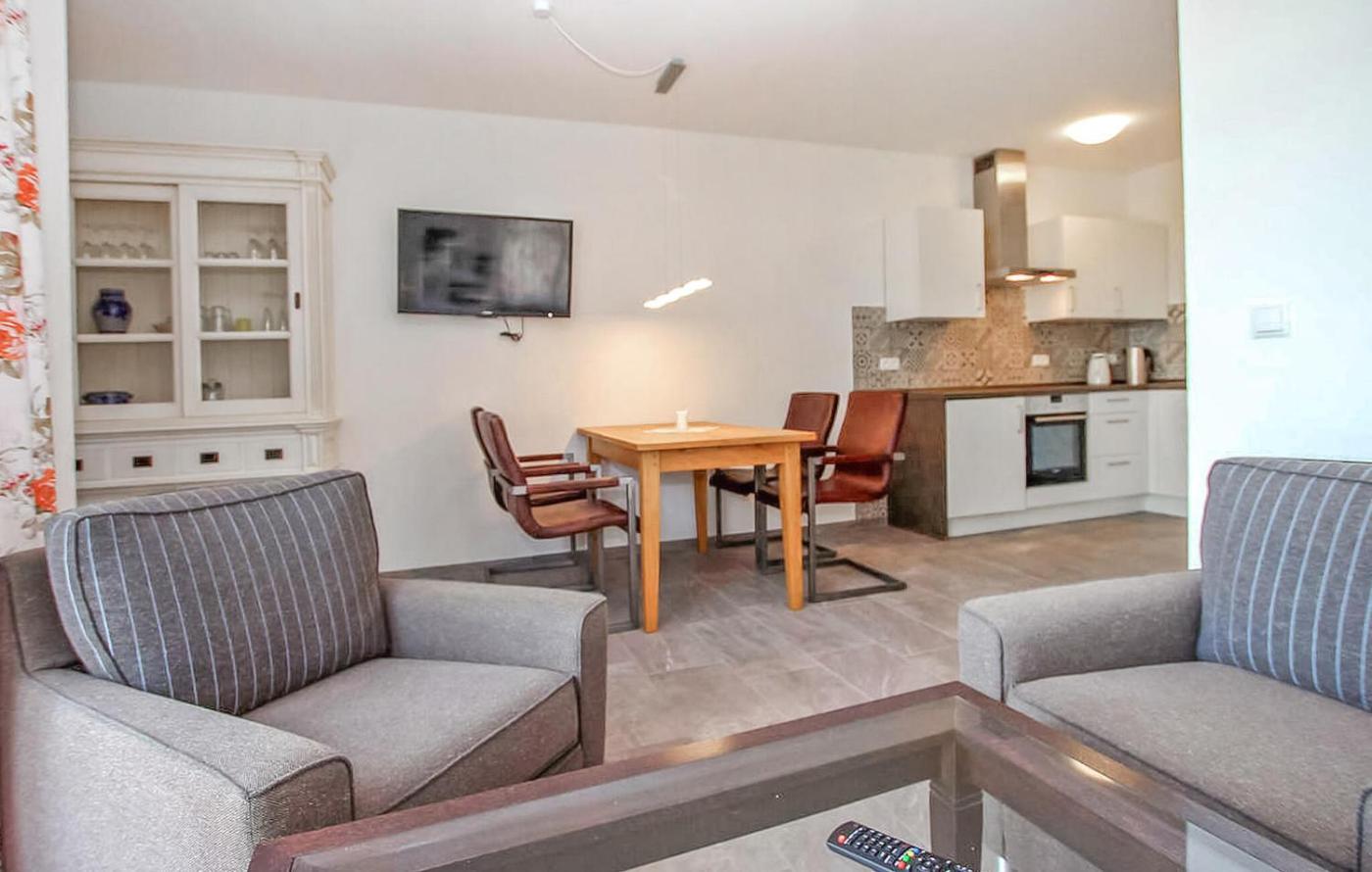 One-Bedroom Apartment. This apartment features 1 bedroom, kitchen, a terrace and 1 bathroom with a shower. Guests will find a stovetop, a refrigerator, a dishwasher and kitchenware in the fully equipped kitchen. The apartment also comes with a barbecue. The apartment features a private entrance, a dining area, a high chair for children along with heating. The unit has 1 bed.