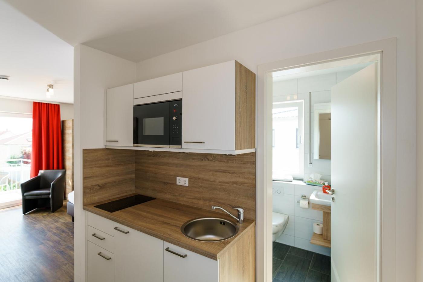 Apartment. This apartment consists of 1 bedroom, a kitchenette and 1 bathroom with a walk-in shower and a hairdryer. The fully equipped kitchenette features a stovetop, a refrigerator, kitchenware and a microwave. The apartment provides a minibar, a wardrobe, heating, as well as a flat-screen TV. The unit offers 1 bed. ;