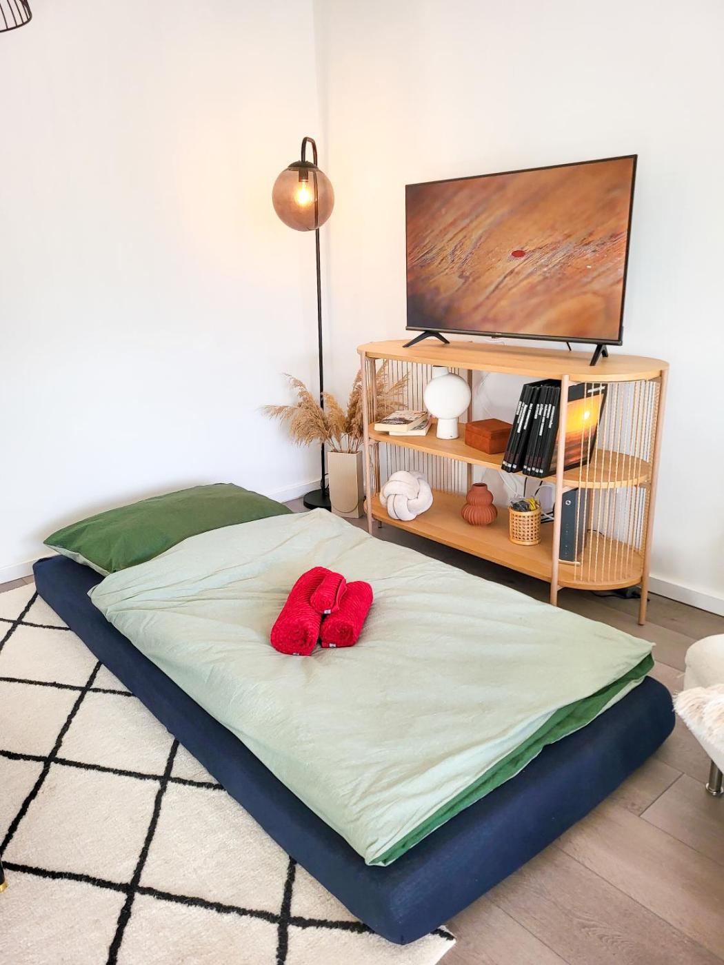 Two-Bedroom Apartment. This spacious apartment is comprised of 2 bedrooms, a seating area with a sofa and 1 bathroom with a bath. The well-fitted kitchen features a stovetop, a refrigerator, a dishwasher and kitchenware. Featuring a balcony with garden views, this apartment also offers a washing machine and a flat-screen TV. The unit offers 2 beds.