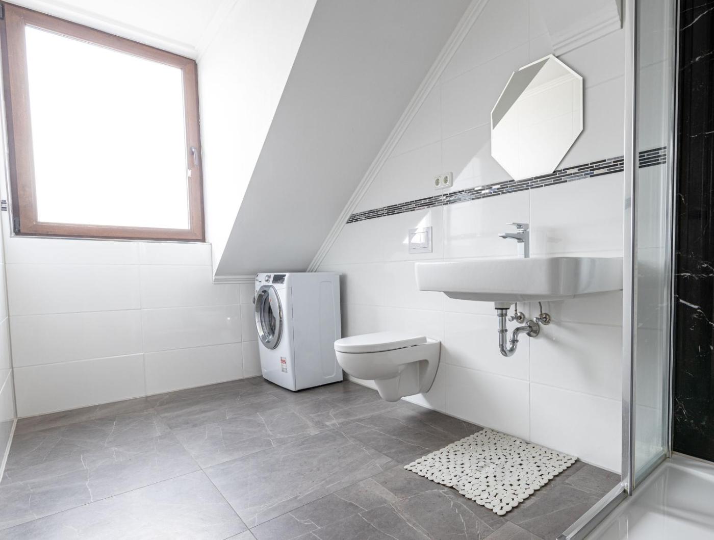 Two-Bedroom Apartment. This spacious apartment consists of 2 bedrooms, a kitchen and 1 bathroom with a hairdryer and slippers. In the well-fitted kitchen, guests will find a stovetop, a refrigerator, a dishwasher and an oven. The apartment provides a washing machine, a tea and coffee maker, a dining area, a wardrobe and a flat-screen TV. The unit offers 5 beds.