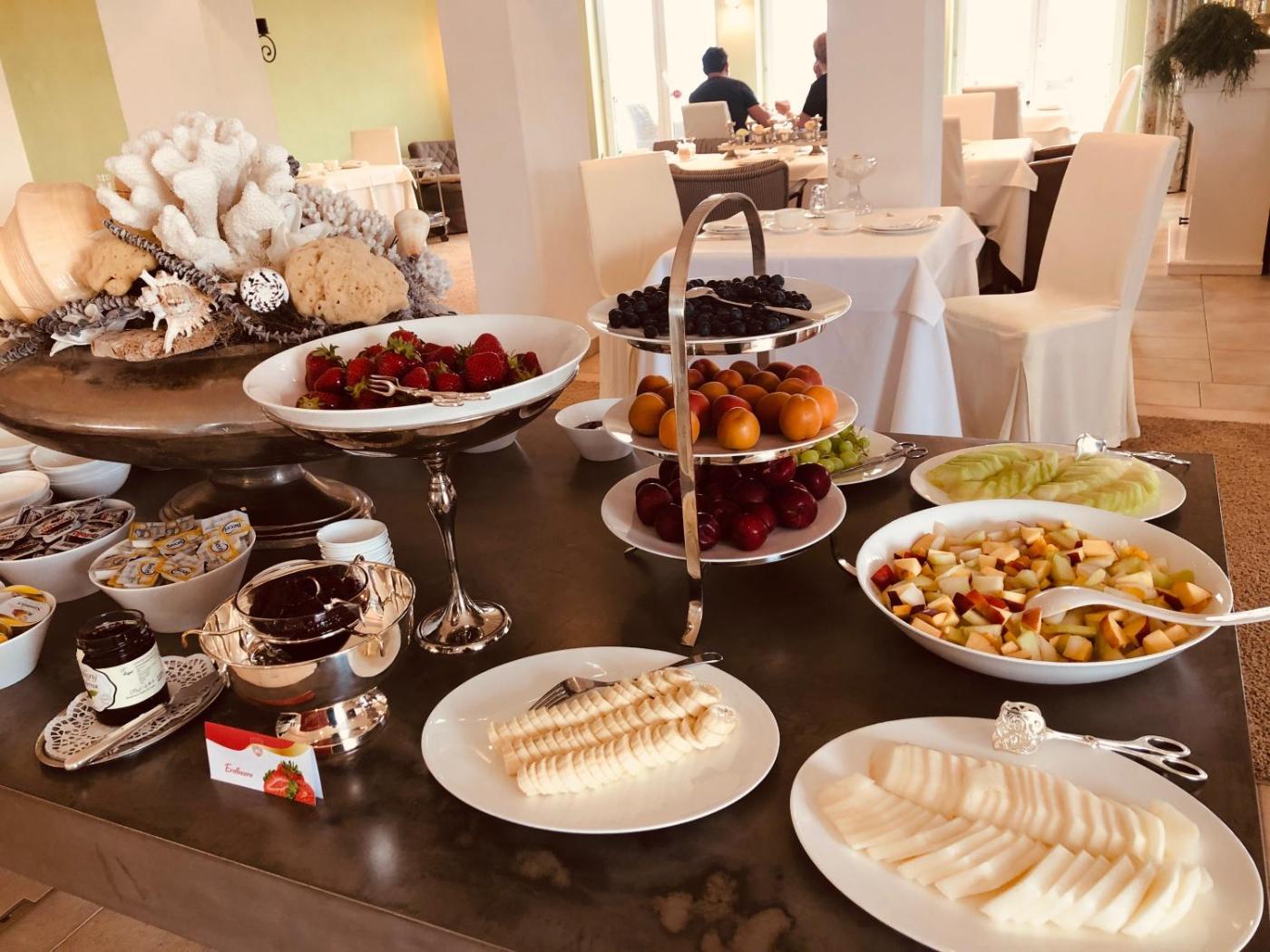 A large buffet breakfast is served in Seeschau’s bright breakfast room overlooking the lake. Guests can enjoy hot drinks beside the fireplace in the afternoon and all-day cool drinks from the lobby bar.