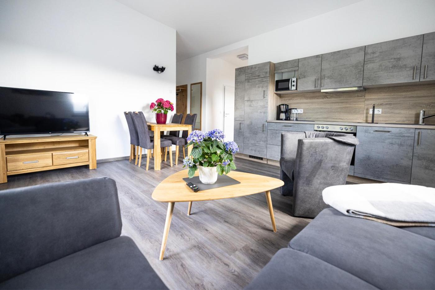 Two-Bedroom Apartment with Garden View. Boasting 2 bedrooms, this spacious apartment has 1 bathroom with a walk-in shower, a seating area and terraceyou can relax. In the kitchenette, guests will find a stovetop, a refrigerator, a dishwasher and kitchenware. Featuring a balcony with garden views, this apartment also features a washing machine and a flat-screen TV with satellite channels. The unit offers 3 beds.