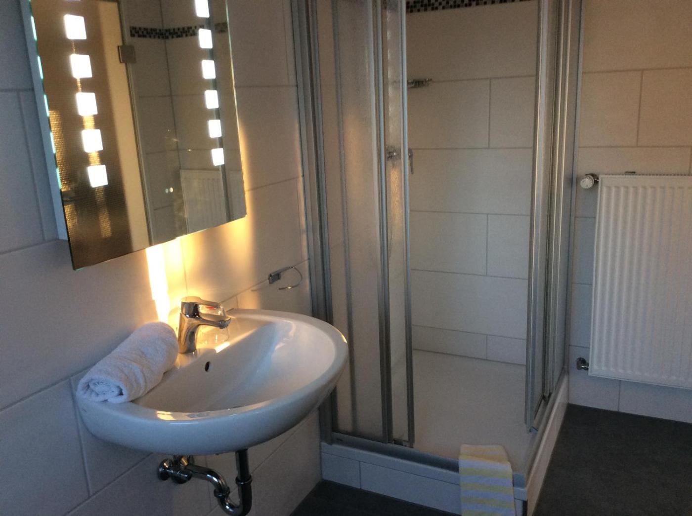Single Room with Bathroom. Featuring free toiletries, this single room includes a private bathroom with a shower and a hairdryer. The single room features a wardrobe, parquet floors, heating, as well as a flat-screen TV with satellite channels. The unit has 1 bed. ;