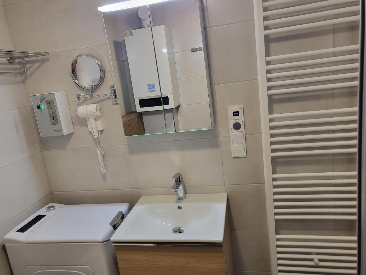 Two-Bedroom Apartment. Featuring 2 bedrooms, this apartment offers 1 bathroom with a walk-in shower, a seating area and terraceyou can relax. Guests will find a stovetop, a refrigerator, a dishwasher and kitchenware in the well-equipped kitchen. The apartment also provides guests with a barbecue. The apartment provides a washing machine, soundproof walls, a tea and coffee maker, a flat-screen TV, as well as garden views. The unit has 3 beds.