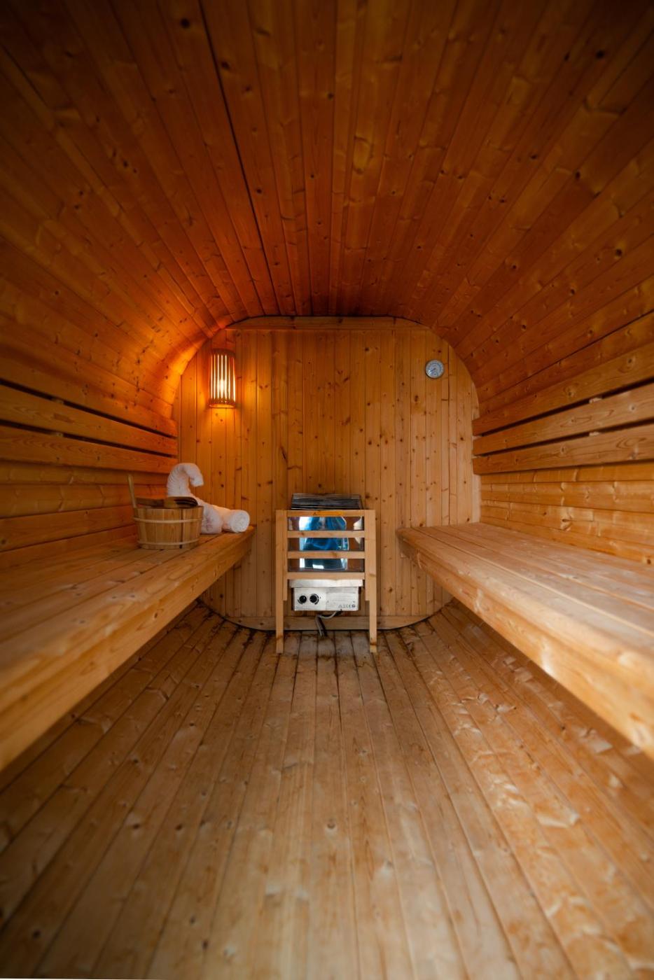 One-Bedroom Apartment. This luxurious apartment provides a hot tub, a sauna and a fireplace. This apartment features 1 living room, 1 separate bedroom and 1 bathroom with a walk-in shower and bathrobes. The well-equipped kitchen has a stovetop, a refrigerator, a dishwasher and kitchenware. Boasting a terrace with garden views, this apartment also features a minibar and a flat-screen TV with streaming services. The unit has 2 beds.
