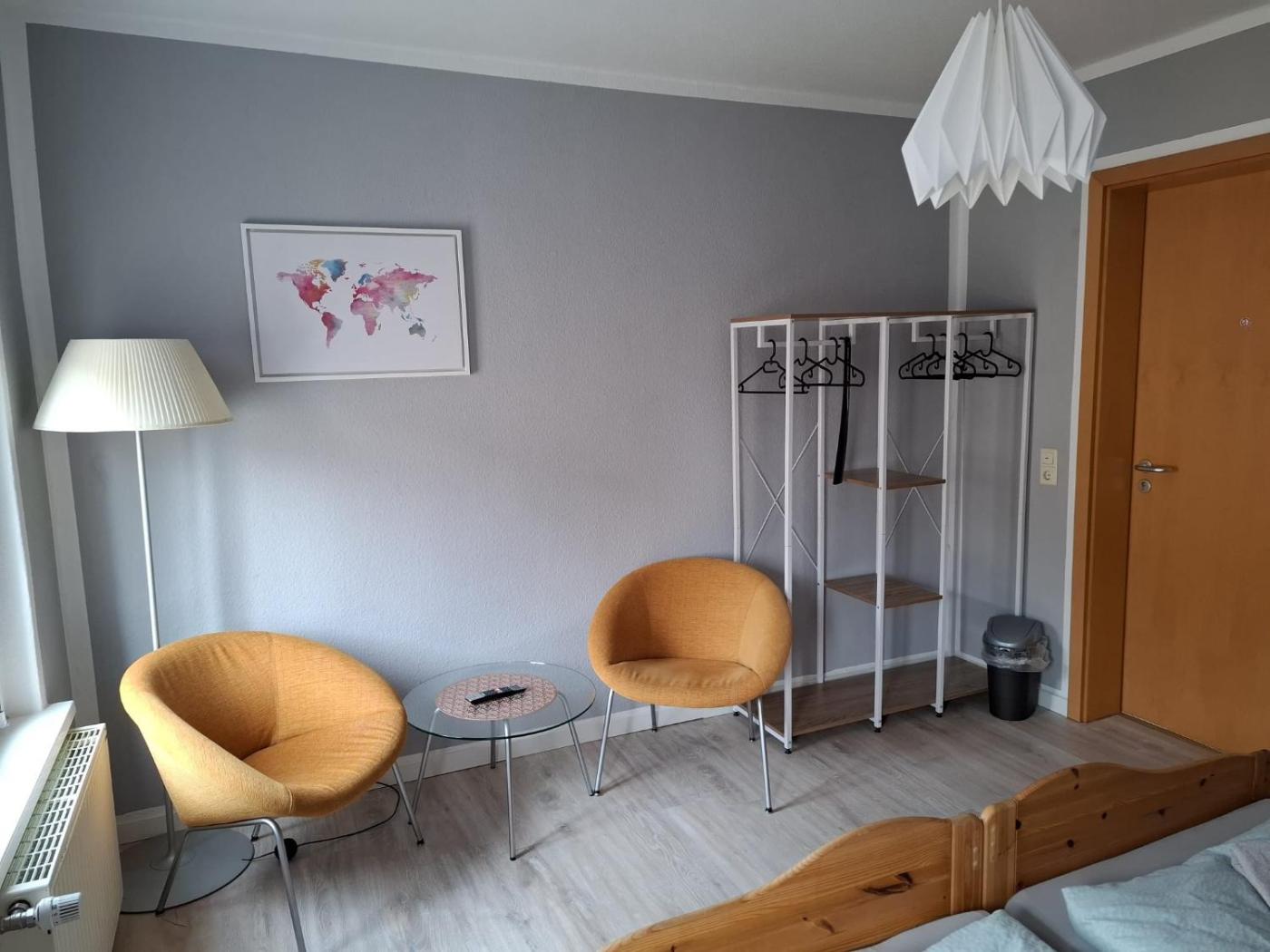 Single Room with Shared Bathroom. The single room offers a seating area, a dining area, as well as a shared bathroom boasting a hairdryer. In the well-equipped kitchen, guests will find a stovetop, a refrigerator, a dishwasher and kitchenware. The single room features soundproof walls, a minibar, a tea and coffee maker, a flat-screen TV with streaming services, as well as garden views. The unit has 1 bed. ;