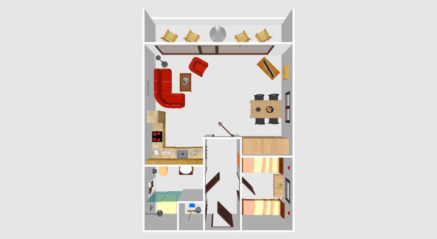 Apartment. This apartment features a sauna. This apartment comprises 1 living room, 1 separate bedroom and 1 bathroom with a shower and a hairdryer. The well-equipped kitchen features a stovetop, a refrigerator, a microwave and a tea and coffee maker. Featuring a balcony, this apartment also provides a high chair for children and a TV. The unit offers 3 beds.