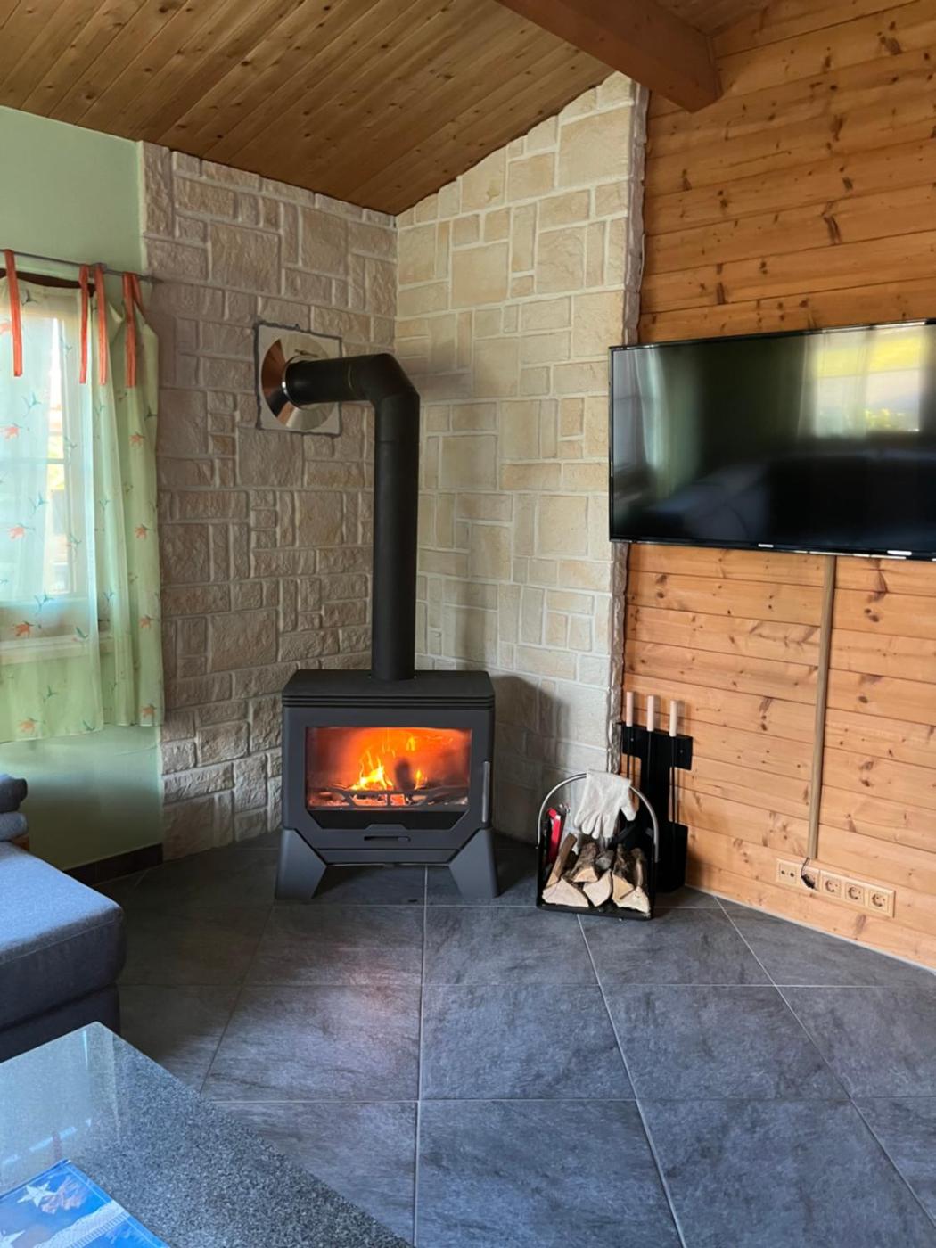Two-Bedroom House. The fireplace is the standout feature of this holiday home. This holiday home comes with 1 living room, 2 separate bedrooms and 1 bathroom with a bath and a shower. Guests will find a stovetop, a refrigerator, a dishwasher and kitchenware in the well-fitted kitchen. The holiday home also includes a barbecue. Boasting a terrace with garden views, this holiday home also features a washing machine and a flat-screen TV with streaming services. The unit has 4 beds.