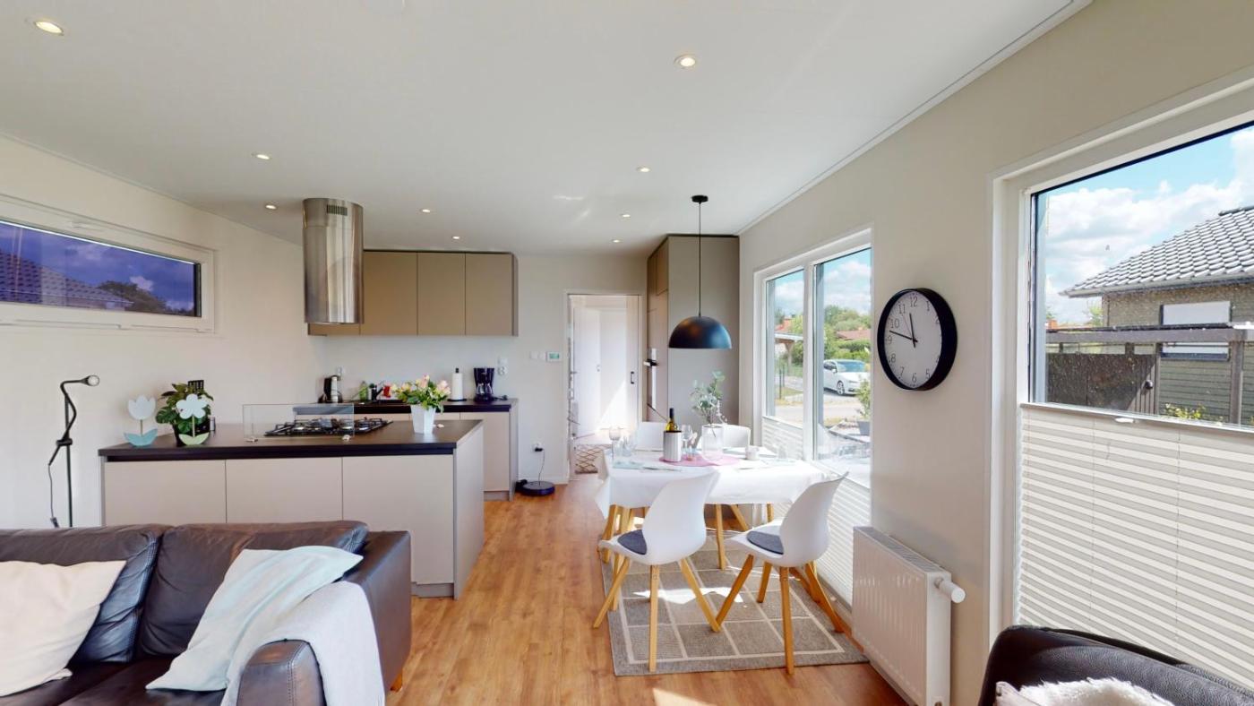 Two-Bedroom House. Boasting a private entrance, this air-conditioned holiday home includes 1 living room, 2 separate bedrooms and 1 bathroom with a shower and a hairdryer. In the fully equipped kitchen, guests will find a stovetop, a refrigerator, a dishwasher and kitchenware. Featuring a terrace with garden views, this holiday home also offers soundproof walls and a flat-screen TV. The unit has 3 beds.