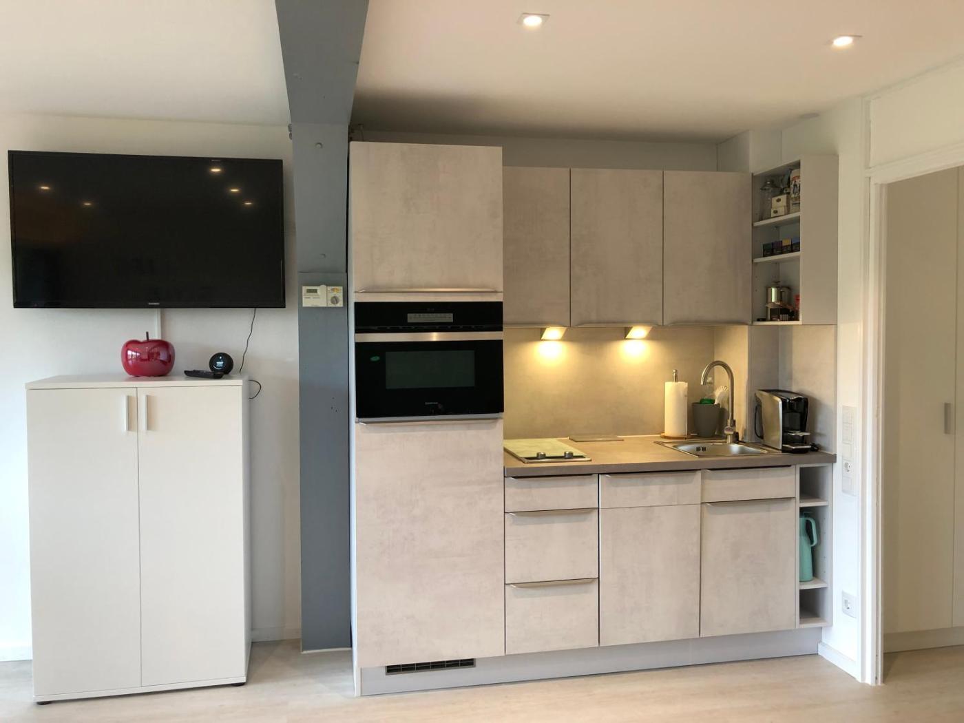 One-Bedroom Apartment. Boasting a private entrance, this apartment includes 1 living room, 1 separate bedroom and 1 bathroom with a shower and a hairdryer. The fully equipped kitchen has a stovetop, a refrigerator, a dishwasher and kitchenware. Featuring a balcony with garden views, this apartment also offers a coffee machine and a flat-screen TV. The unit has 2 beds.