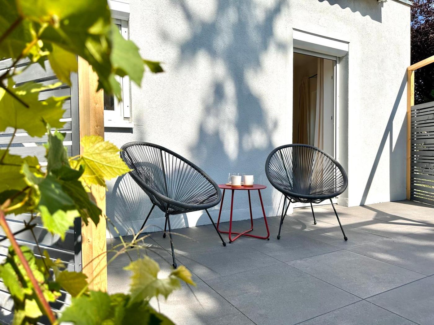 The holiday home with a terrace andcourtyard views features 1 bedroom, a living room, a flat-screen TV, an equipped kitchen with an oven and a microwave, and 1 bathroom with a shower. Towels and bed linen are provided in the holiday home. For added privacy, the accommodation features a private entrance.