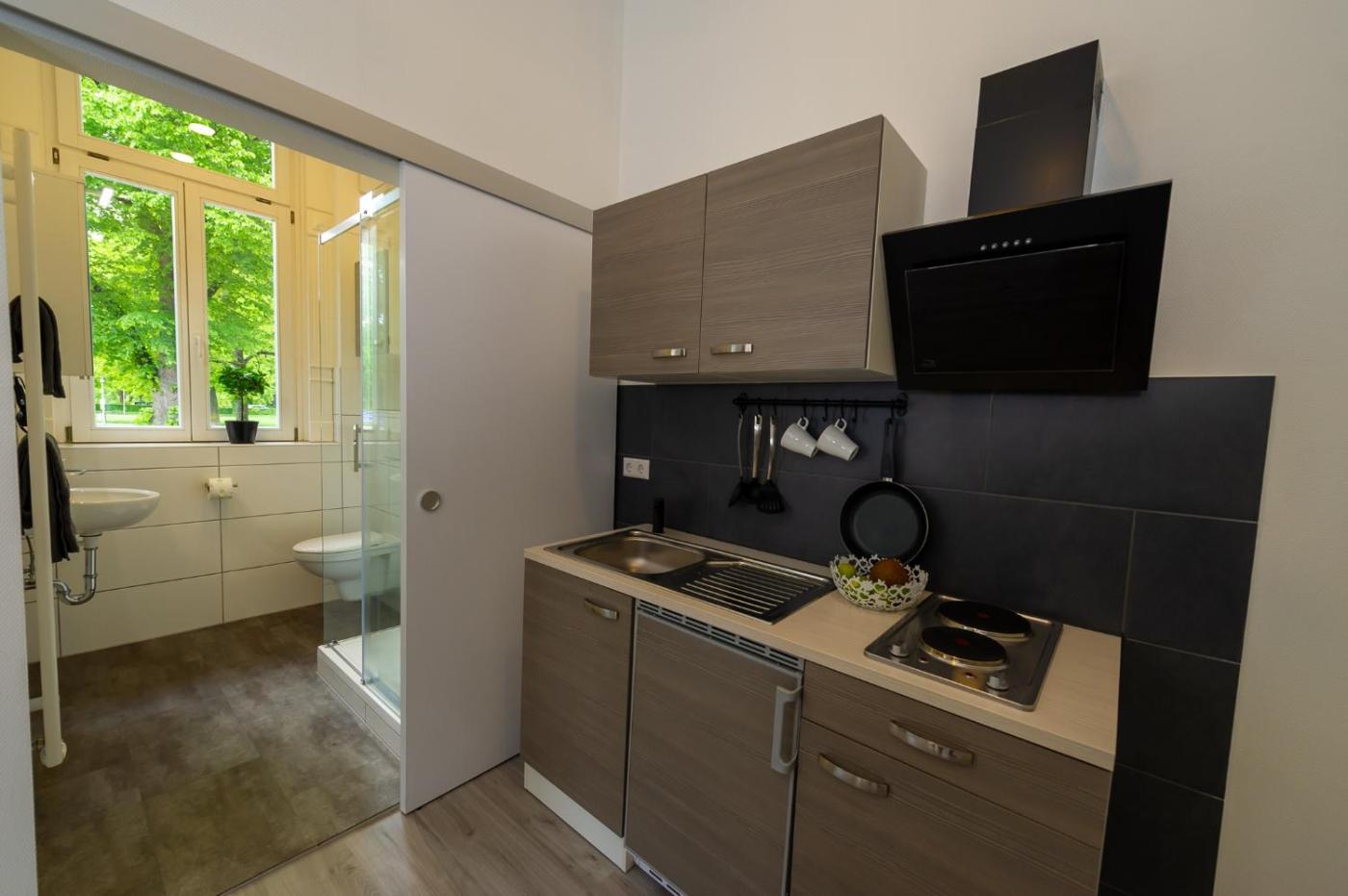 Deluxe Single Room. Featuring free toiletries, this single room includes a private bathroom with a shower and a hairdryer. Guests can make meals in the kitchen that features a stovetop, a refrigerator, kitchenware and a tea and coffee maker. This single room has a wardrobe, heating and a flat-screen TV. The unit has 1 bed.