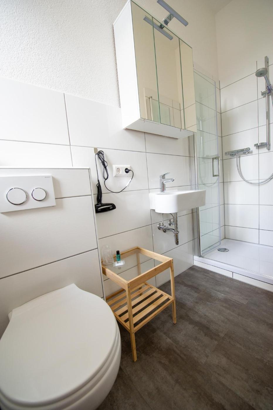 Deluxe Double Room with Shower. Featuring free toiletries, this double room includes a private bathroom with a shower and a hairdryer. The well-fitted kitchen has a stovetop, a refrigerator, kitchenware and a tea and coffee maker. The double room has a flat-screen TV, a wardrobe, parquet floors, as well as heating. The unit has 1 bed. ;