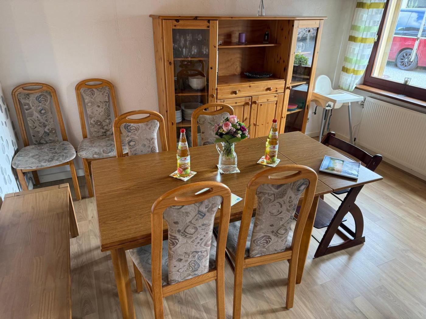 For guests with children, the holiday home features outdoor play equipment and a baby safety gate.