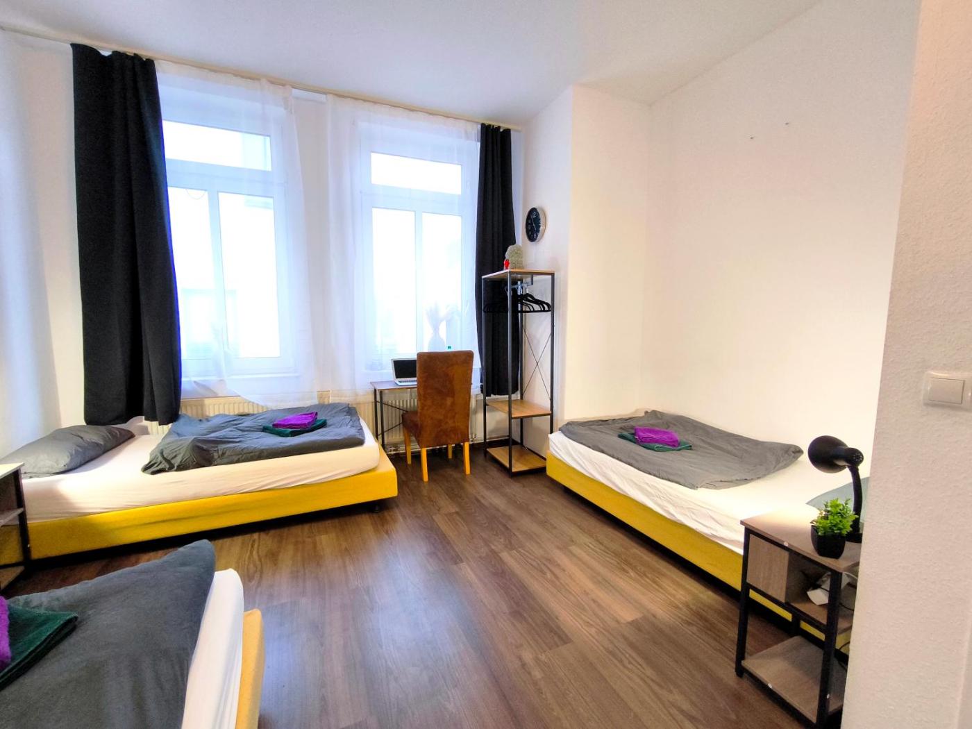 Four-Bedroom Apartment. The apartment features 4 bedrooms, 2 bathrooms and a kitchen. The apartments kitchen is available for cooking and storing food. This apartment has a washing machine, heating and a flat-screen TV. The unit offers 9 beds.