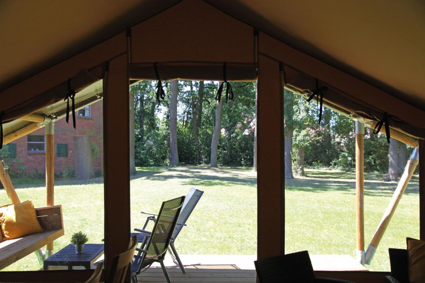 Tent. In the fully equipped kitchen, guests will find a stovetop, a refrigerator, kitchenware and a microwave. The tent features a private entrance, a tea and coffee maker, a terrace with garden views as well as a shared bathroom boasting a shower. The unit has 3 beds.