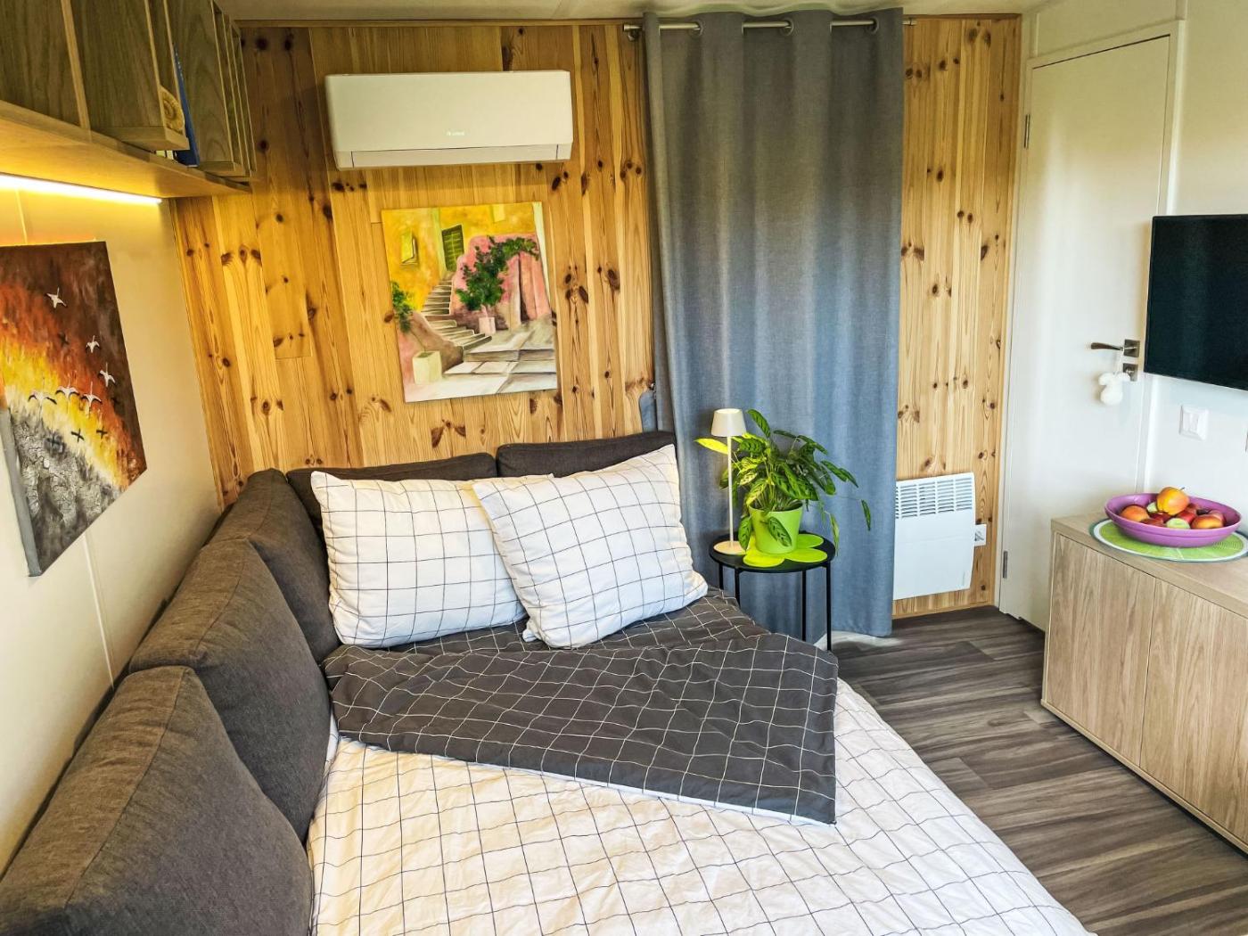 Holiday Home. This air-conditioned holiday home comes with 1 living room, 1 separate bedroom and 1 bathroom with a shower. In the kitchen, guests will find a stovetop, a refrigerator, kitchenware and an oven. Boasting a terrace, this holiday home also features heating and a TV with satellite channels. The unit has 2 beds.