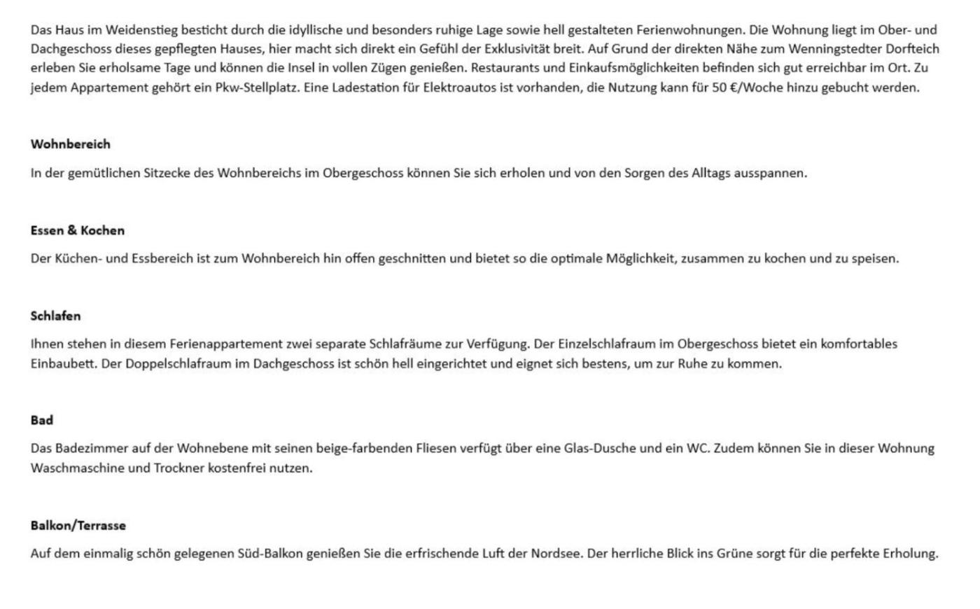 Additional information about the offer Germany - Wenningstedt - Weidenstieg 16A, App 6, opinions of holidaymakers as well as available dates can be found on the website our partner.