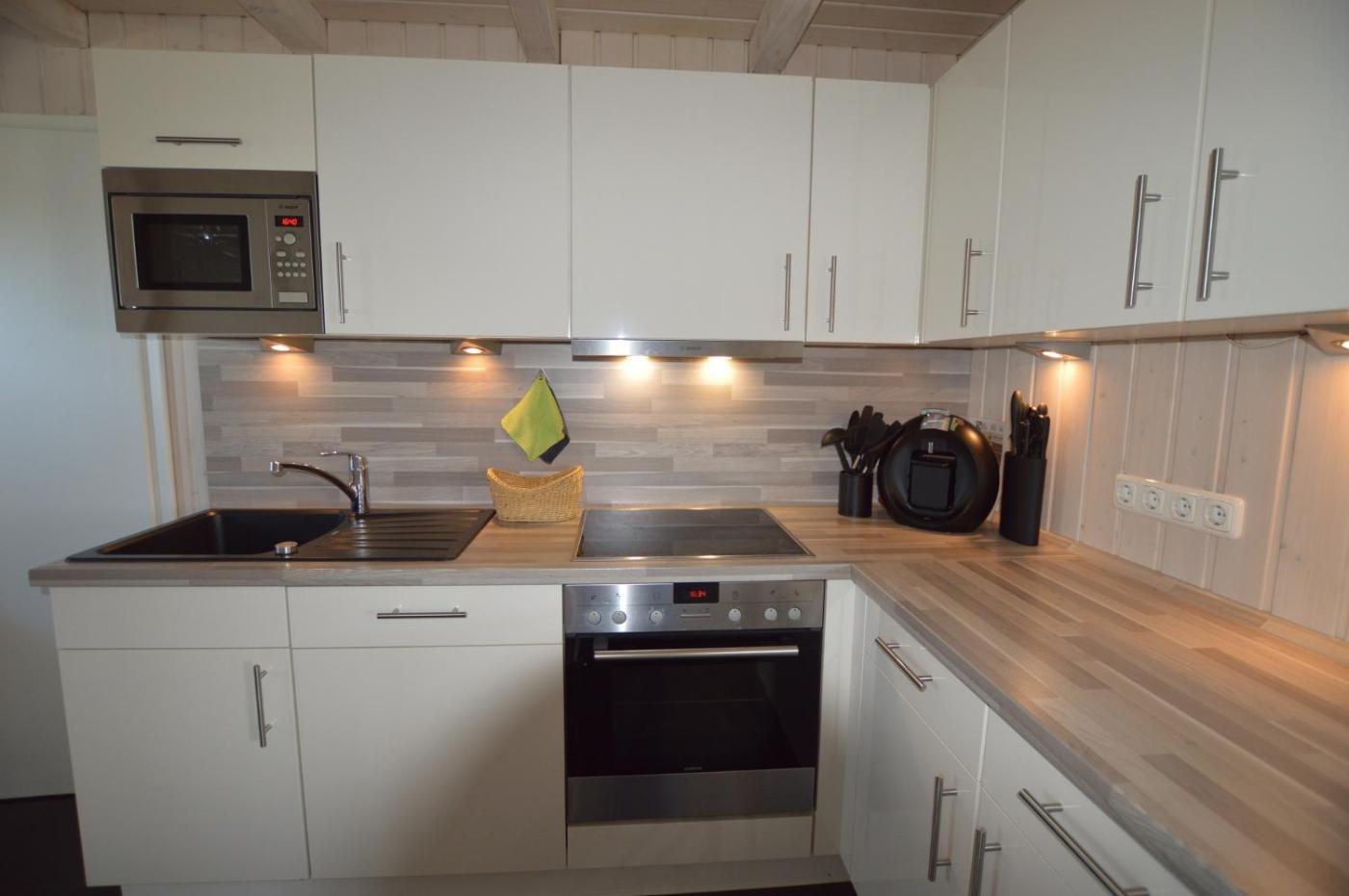 Three-Bedroom House. This holiday homes standout features are the sauna and fireplace. Featuring a private entrance, this holiday home comprises a kitchen, 3 bedrooms and 1 bathroom with a bath and a shower. Guests will find a dishwasher, kitchenware, an oven and a microwave in the well-equipped kitchen. The holiday home also provides guests with a barbecue. The holiday home provides a TV with satellite channels, a washing machine, a coffee machine, a game console as well as garden views. The unit offers 2 beds and 1 futon.