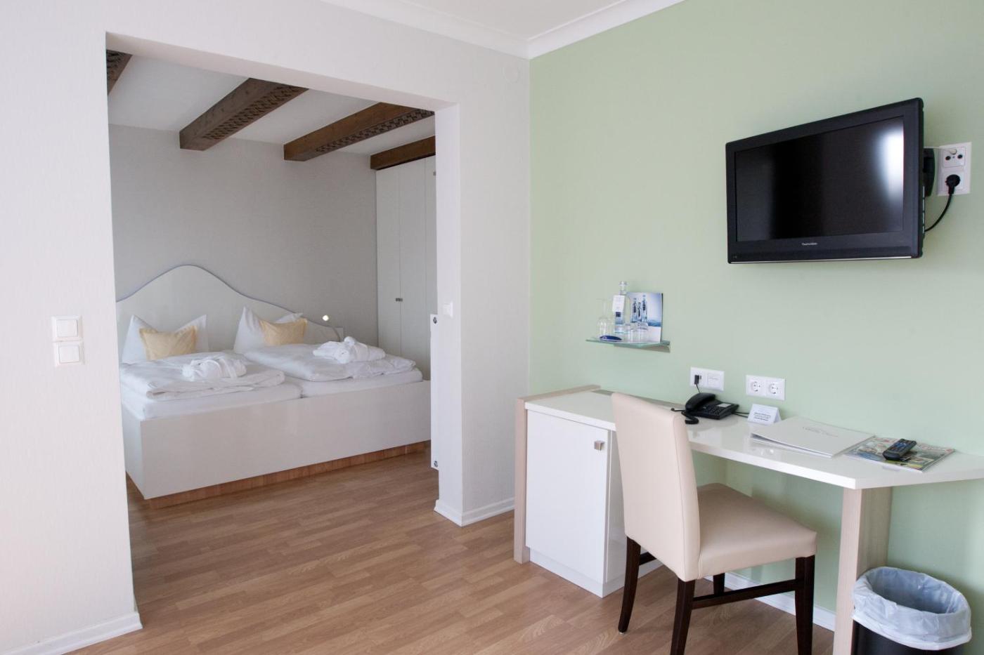 Frühstückshotel Seemannsbraut spacious rooms are decorated in colours of the island, white, blue, green and beige. Each room features a living area with flat-screen TV, a seating area or sofa and a minibar. The hotel also offers a balanced breakfast buffet.