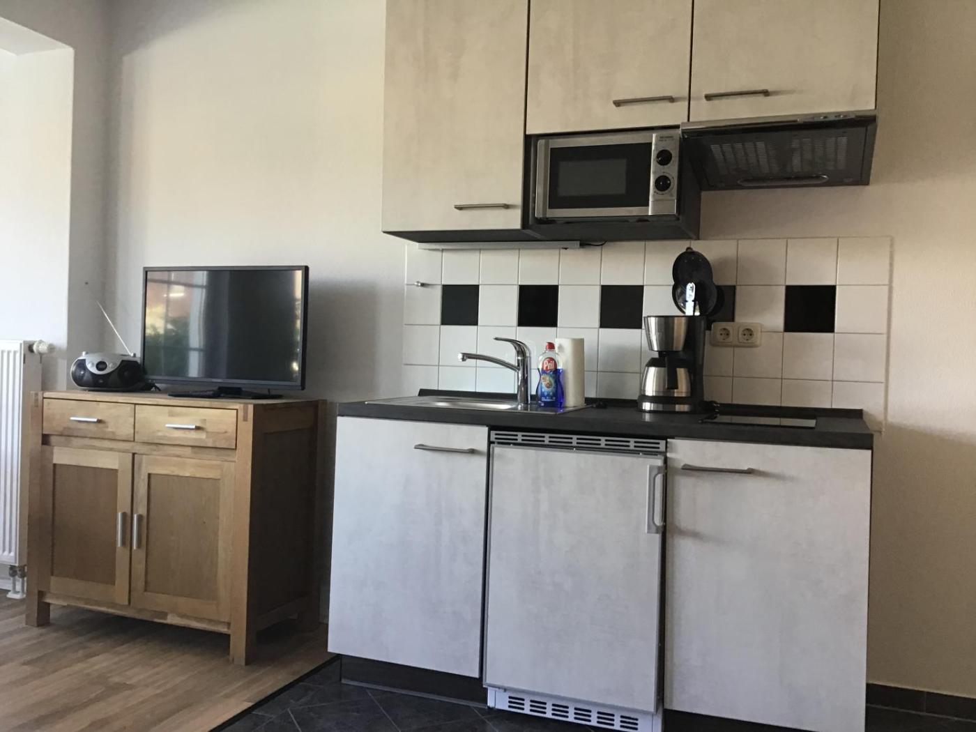 Apartment. This apartment features a kitchenette, a seating area, 1 separate bedroom and 1 bathroom with a walk-in shower and a hairdryer. In the well-fitted kitchenette, guests will find a stovetop, a refrigerator, kitchenware and a microwave. The apartment features a flat-screen TV with satellite channels, a tea and coffee maker, a dining area, a wardrobe as well as ancourtyard view. The unit has 1 bed. ;